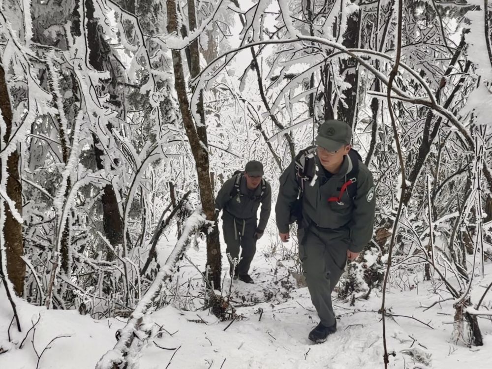 虽已立春,大熊猫国度公园荥经片区依然大雪纷飞。记者从四川雅安荥经县城起程赶赴大相岭,山下天还晴着,车拐进山路,雾就从沟谷里漫上来;再往上,细雨打着树枝上的冰棱,把山路润得发亮。到了大相岭当然保护区管护中心,车窗外已是白花花一派,气温低至零下。