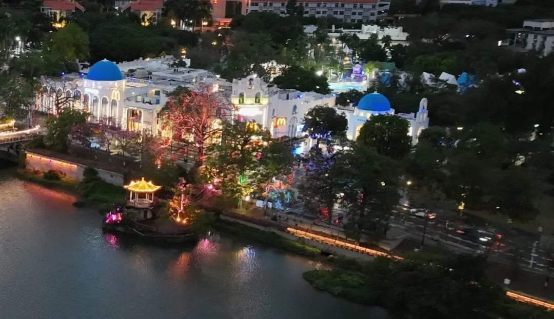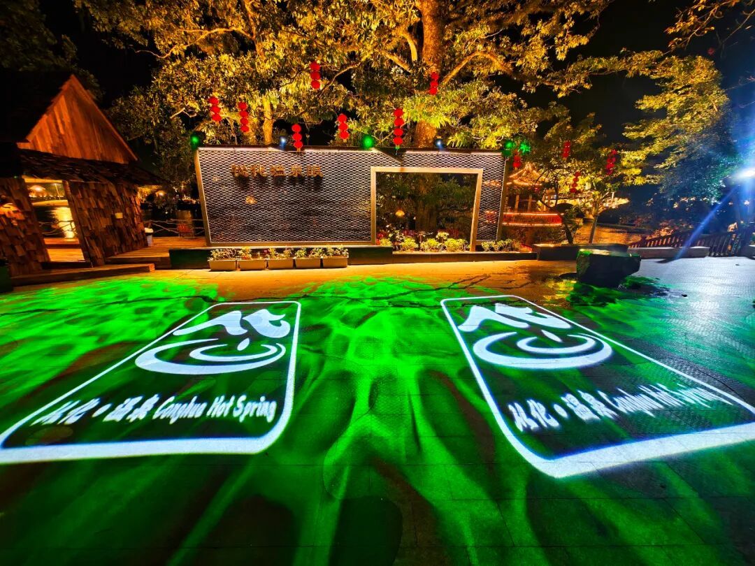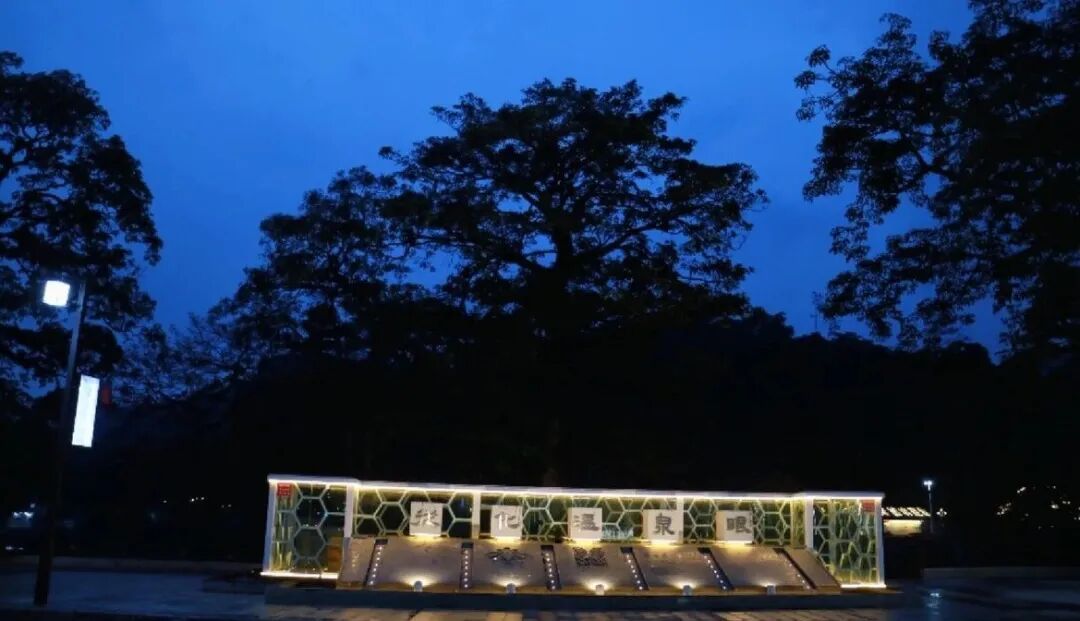 日间的流溪河两岸步步是景,夜晚的沸腾更是别具韵味。与绿化提高井水不犯河水的夜间照明工程,秉抓“作念靓而非作念亮”的策划理念,以3000K暖白光为主色调,完成了荔枝蜜公园、碧浪桥及桥头泉眼、流溪河东西两岸岸线等五大区域的夜景修订,让温泉小镇的夜晚既有温度又有好意思感。