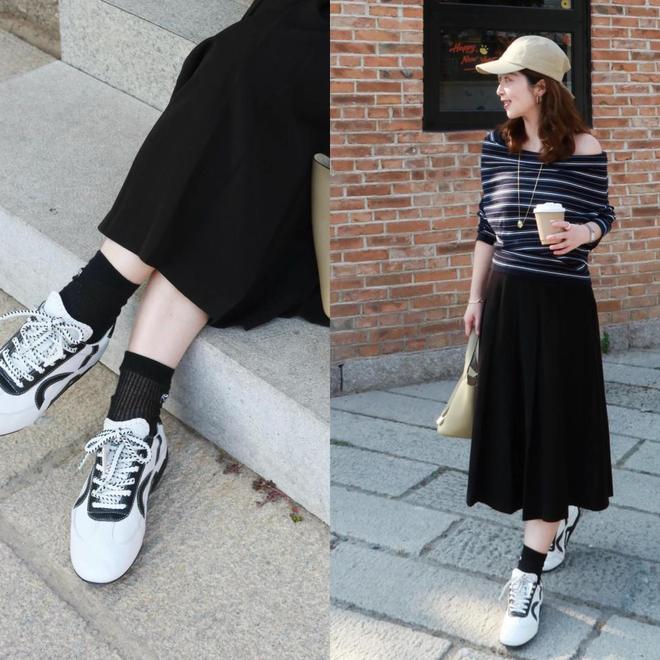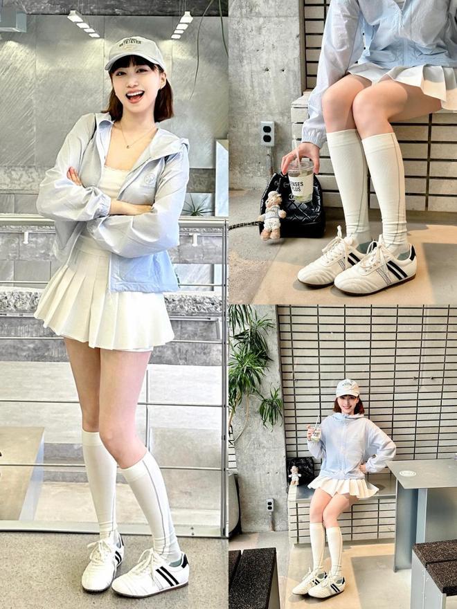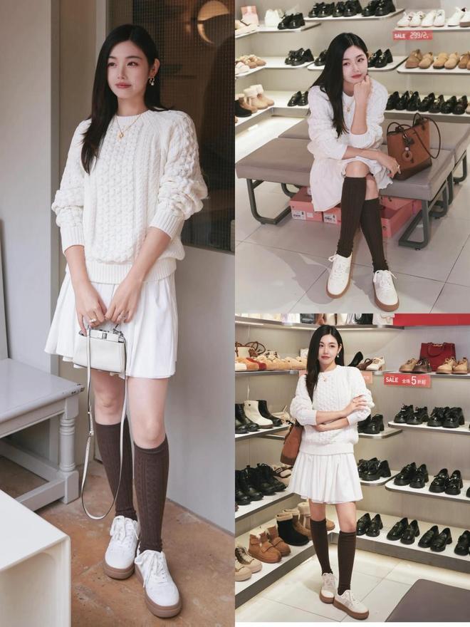 当我们身穿一件白皙的白色诚挚毛衣,配上白色压褶短裙,这时可选一对白色的德训鞋来搭配,顺色穿搭更显精良。诚然也不错像上头这位达东说念主雷同,用棕色的中筒袜来点缀,造成一个撞色,让造型更有档次。