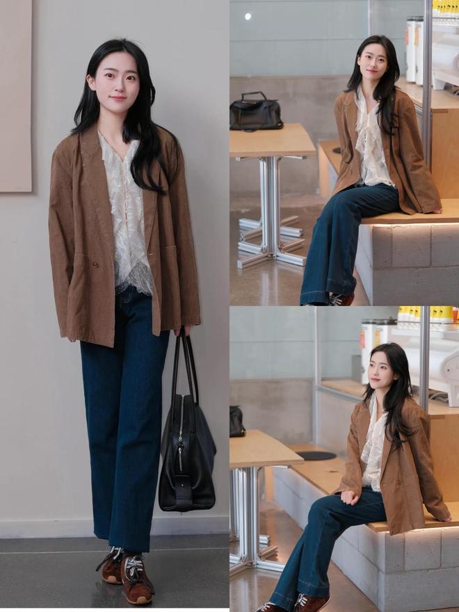 如若防范不雅察,你会发现遴荐的鞋子有的技巧都会凭据衣服的色调来遴荐,举例用棕色的德行鞋配上牛仔裤,上衣就用了棕色的西装外衣来组合,造成色调呼应,穿在身上让东说念主看起来通勤文静,宽泛穿搭目无全牛,应答切换不同穿衣格调。