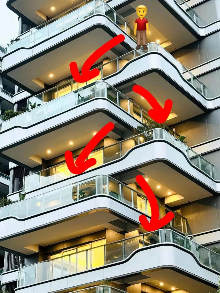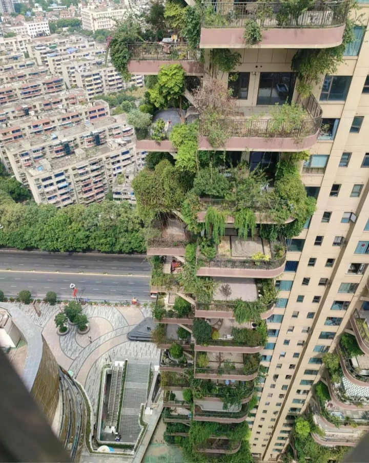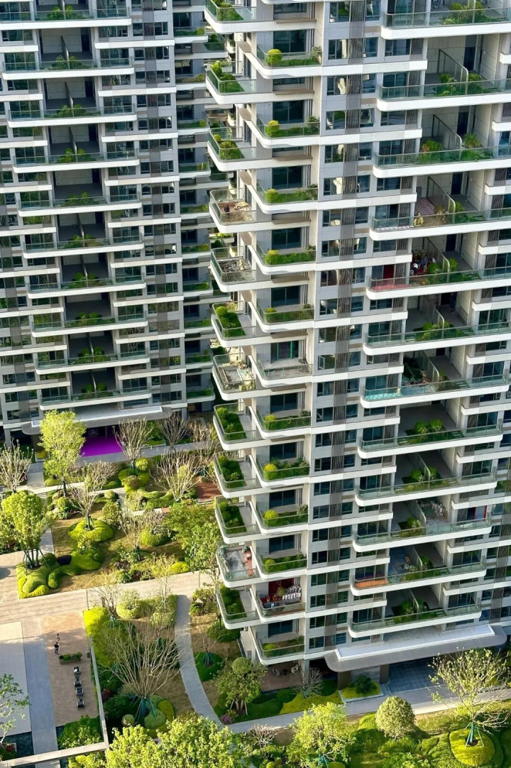 为了让每个露台皆能晒到太阳,屋子作念了层层退台梗概错层狡计,从外面看,整栋楼像个“垂直丛林”,高档感拉满,这亦然它最能忽悠东说念主的方位。
