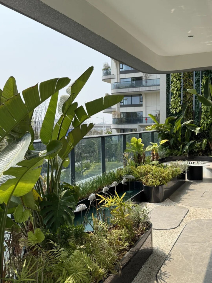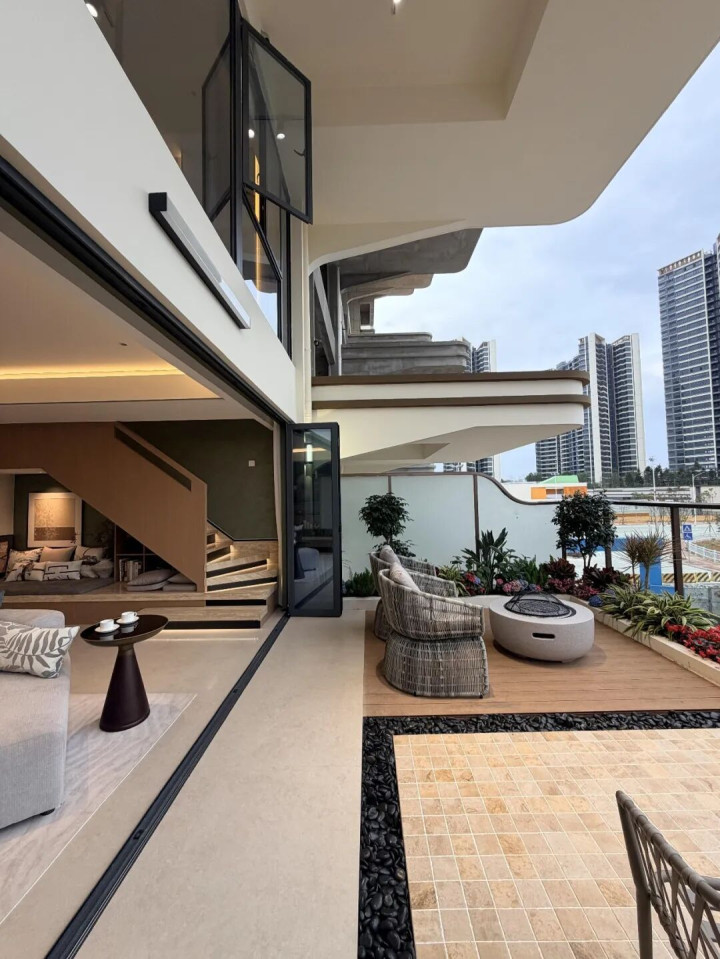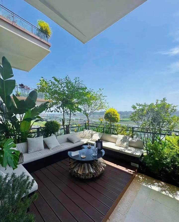 它的特色很较着:每家皆有个超大露台,小的几十平,大的上百平,不是我们凡俗东说念主家用来曝晒的小阳台,是能种大树、搞景不雅,甚而搭个小泳池的那种。