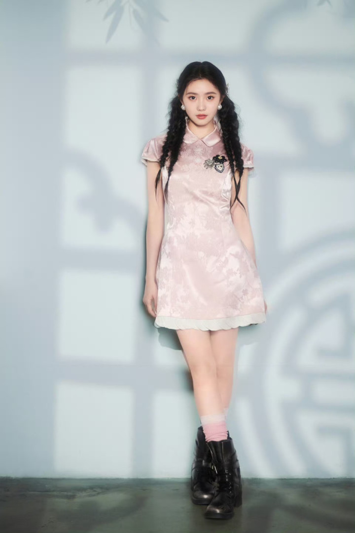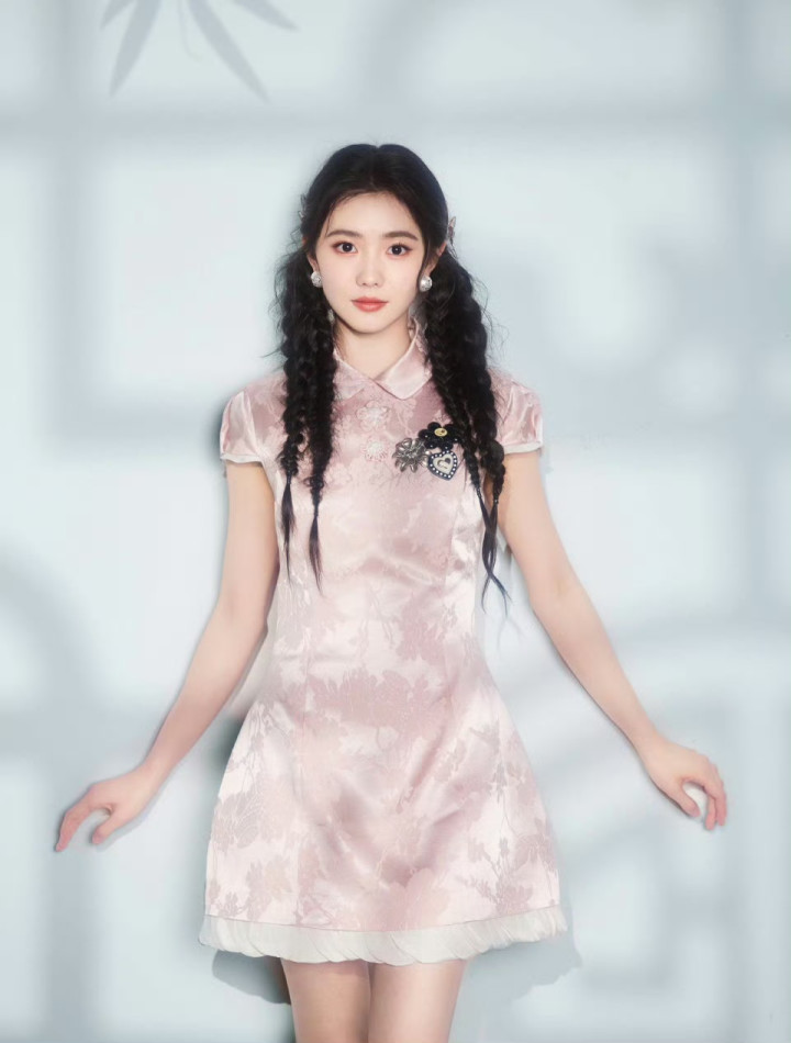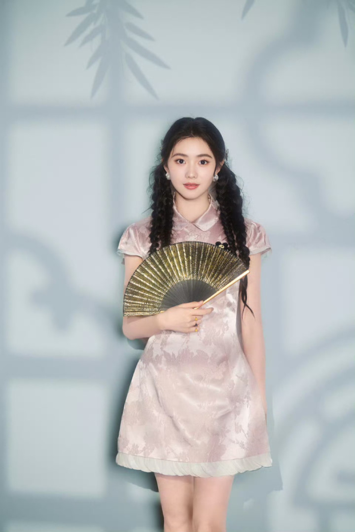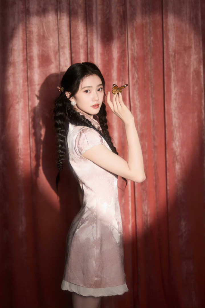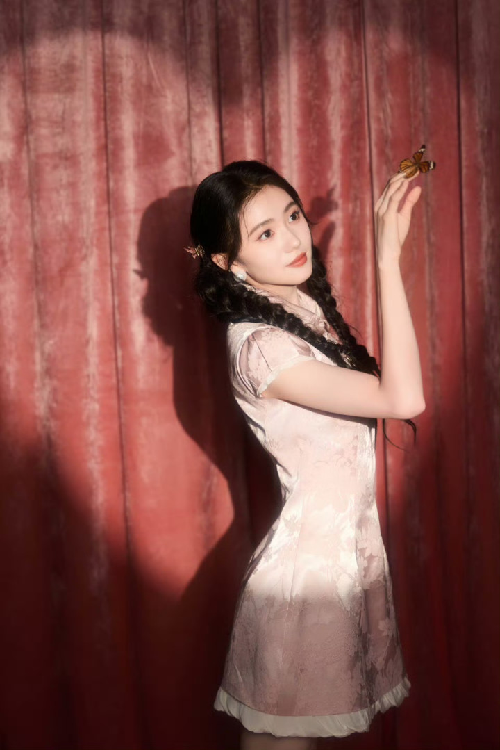 澳门十大赌城 刘浩存一稔粉色短旗袍秀丽腿, 真嫩真迷东谈主