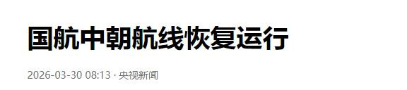 央视新闻:2026-03-30:国航中朝航路还原运行
