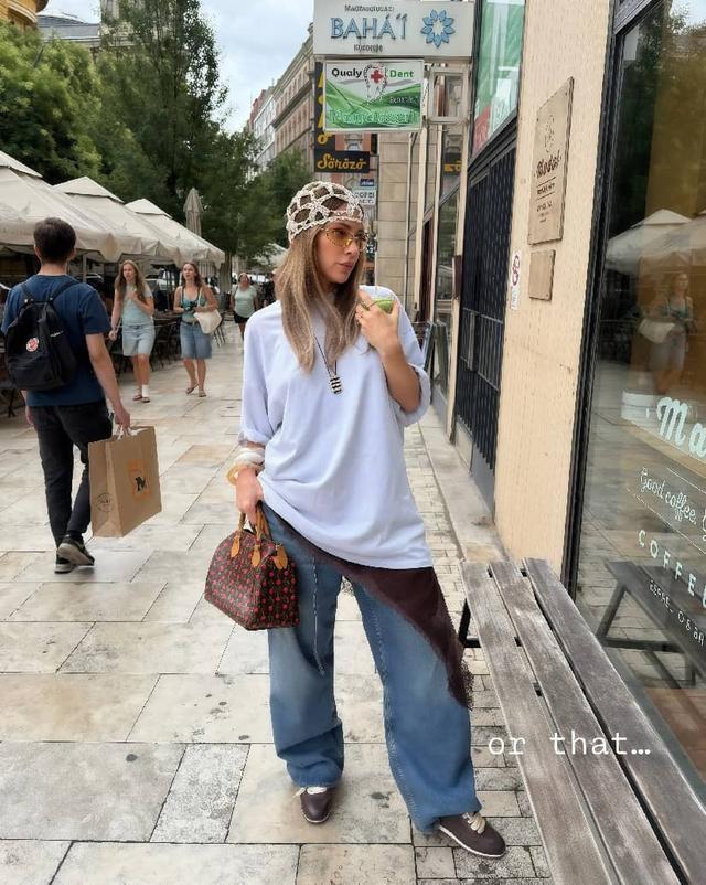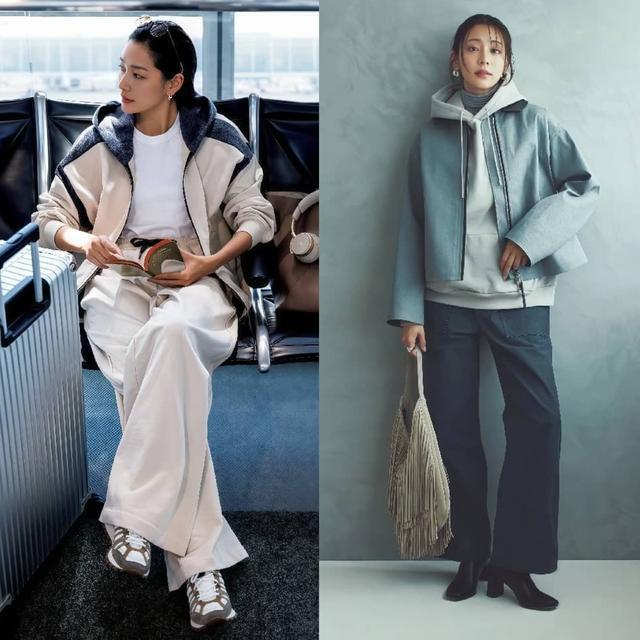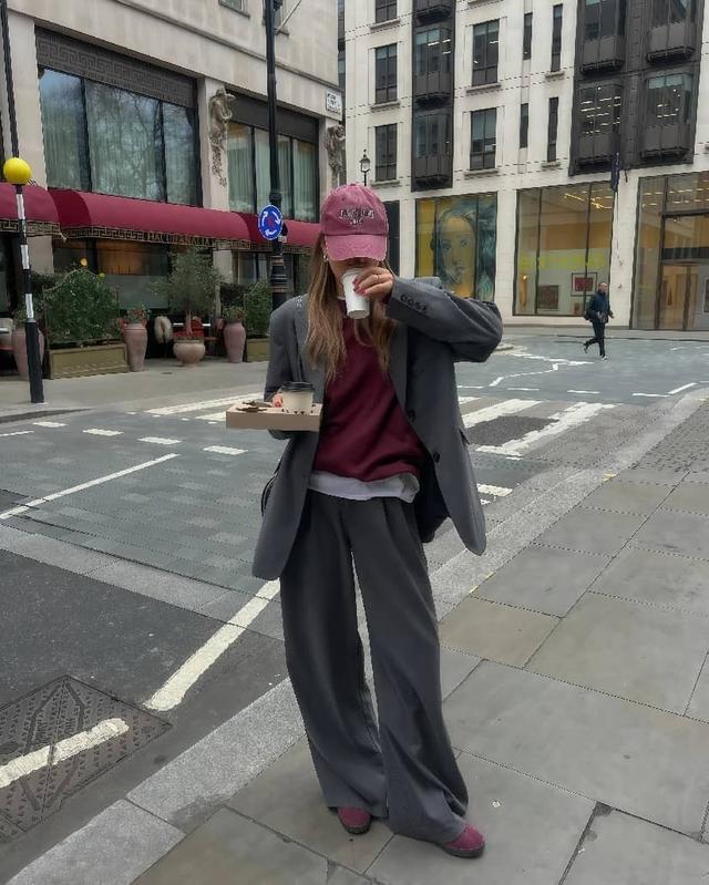 与其眷注会穿的东说念主,不如我方当个“文雅精”,有品位亦然实力,春天穿卫衣和阔腿裤,不错尝试一下“叠穿轨则”,薄款卫衣叠搭oversize版型的西装,帽子和鞋子与卫衣同色,视觉上更显互助感。