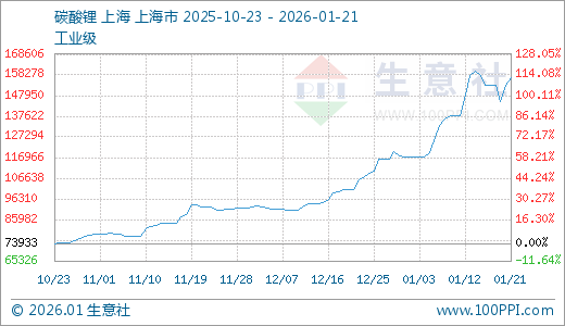 据买卖社监测,碳酸锂01月21日最新价钱159000.00元/吨,最近10天上升13.57%,15天上升23.26%,澳门赌城20天上升33.17%,30天上升47.59%,60天上升68.67%。