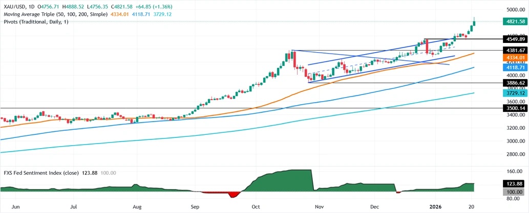 Valencia暗示,金价此前创下历史新高4888好意思元/盎司,随后出现回落,但高涨趋势依然保抓不变。若是金价保抓在4800好意思元/盎司上方,这可能为金价挑战4900好意思元/盎司掀开大门。一朝蹂躏4900好意思元/盎司,金价有望测试5000好意思元/盎司这一缺欠关隘。